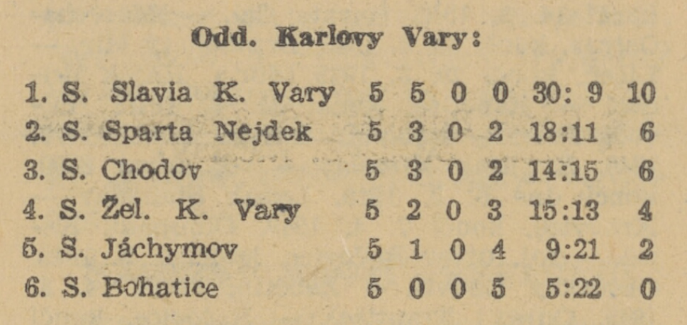 Tento klub nejdeckým fotbalovým patriotům ve své době nedělal žádnou ostudu, a to ani dorostenci. V podzimním mistrovství v roce 1949 hráli všichni dorostenci v Karlovarském kraji celkem v 8 skupinách, tehdy se tomu říkalo jednotlivě „oddělení“. Rozděleno to bylo na oddělení Kraslice, Nejdek, Sokolov, Karlovy Vary, Kadaň, Aš, Cheb a Podbořany. Jen pro zajímavost, v oddělení Kraslice hráli Kraslice, Lomnice, Kynšperk a HDB Sokolov, v oddělení Nejdek hráli Nové Sedlo, Abertamy, Doubí, Karlovy Vary, Čechie Teplá a Poštovní Karlovy Vary, v oddělení Sokolov hráli Loket, Chemička Sokolov, Svatava a Sokolov, v oddělení Kadaň hráli Kadaň, Perštejn, Kláštererec a Vojkovice, v oddělení Aš hráli Aš, Františkovy Lázně, Plesná a Poštovní Cheb. Jediné oddělení Podbořany nemohlo být z technických důvodů sehráno. Sparťanští nejdečtí dorostenci hráli oddělení Karlovy Vary, a to s kým hráli, a jak se jim v podzimním mistrovství vedlo, vidíte v tabulce.
