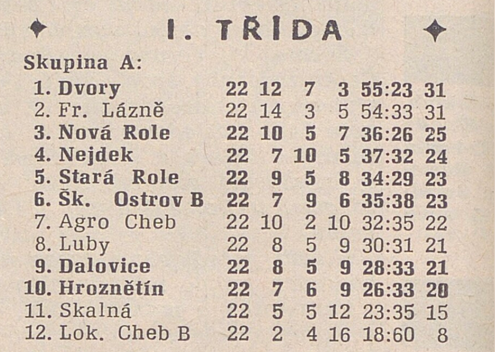 Co tomu předcházelo? V soutěžním ročníku 1983/1984 byla I. A třída ve znamení Lokomotivy Karlovy Vary. V této krajské soutěži startovalo celkem osm celků z našeho okresu, a tak o místní derby nebyla nouze. Fotbalisté ze Dvorů, kteří stejně jako funkcionáři a diváci toužili po postupu, nesplnili očekávání. Přesto, že se drželi stále v popředí tabulky, tak ale s velkým odstupem od první postupové příčky. Jarní část soutěže jim vůbec nevyšla, a z 11 utkání získali pouze 11 bodů. Komu ale jarní část vyšla náramně, tak to byla Stará Role. Na podzim aspirant na sestup, a na jaře jediná prohra a suverénní vítěz jarní části. Vraťme se teď ale zpět ke Dvorům. Nakonec z toho byl smutek a druhé místo za postupující Lokomotivou Karlovy Vary.